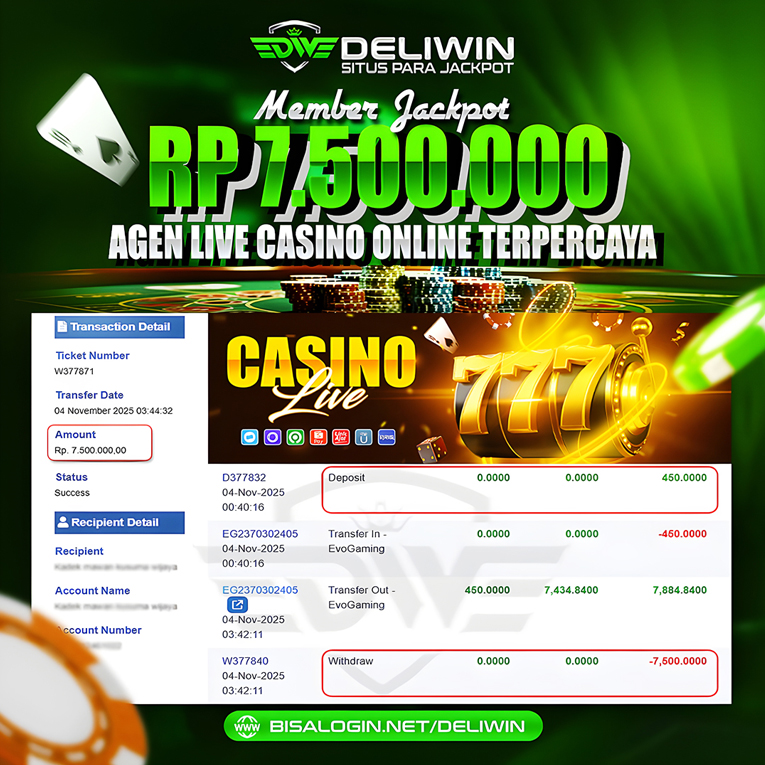 Continue readingMEMBER JACKPOT PROVIDER : LIVE CASINO PERMAINAN : EVOLUTION GAMING DEPOSIT : IDR 450.000 WITHDRAW : IDR 7,500.000 DELIWIN Daftar
