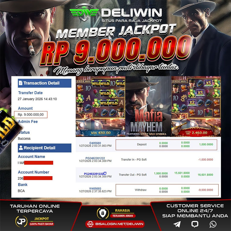 MEMBER JACKPOT PROVIDER : PG SOFT PERMAINAN : MAFIA MAYHEM DEPOSIT : IDR 1,000.000 WITHDRAW : IDR 9,000.000 Setiap pemain